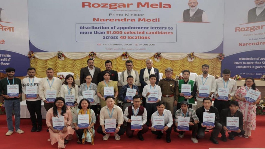 The appointment letters were handed over by Union Minister of State for External Affairs and Textiles, Pabitra Margherita. The recruits were selected across various Central Government departments — including 16 candidates in the Department of Posts, 3 in NEEPCO, 2 in the CRPF, 27 in the Railways, and 10 in the State Bank of India (SBI).