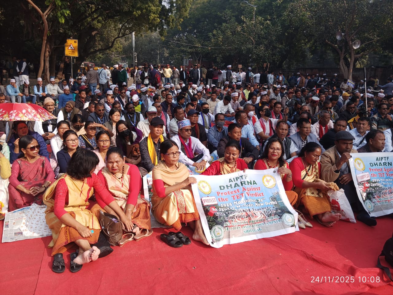 Led by AMPSTA general secretary, F.C Shullai and president, Dipak Marak, primary school teachers from Meghalaya joined the dharna organised by the All India Primary Teachers Federation (AIPTF) in the national capital on Monday to oppose the Supreme Court ruling on 1st September, 2025 which stated that all primary school teacher must pass the Teachers Eligibility Test (TET) within two years.